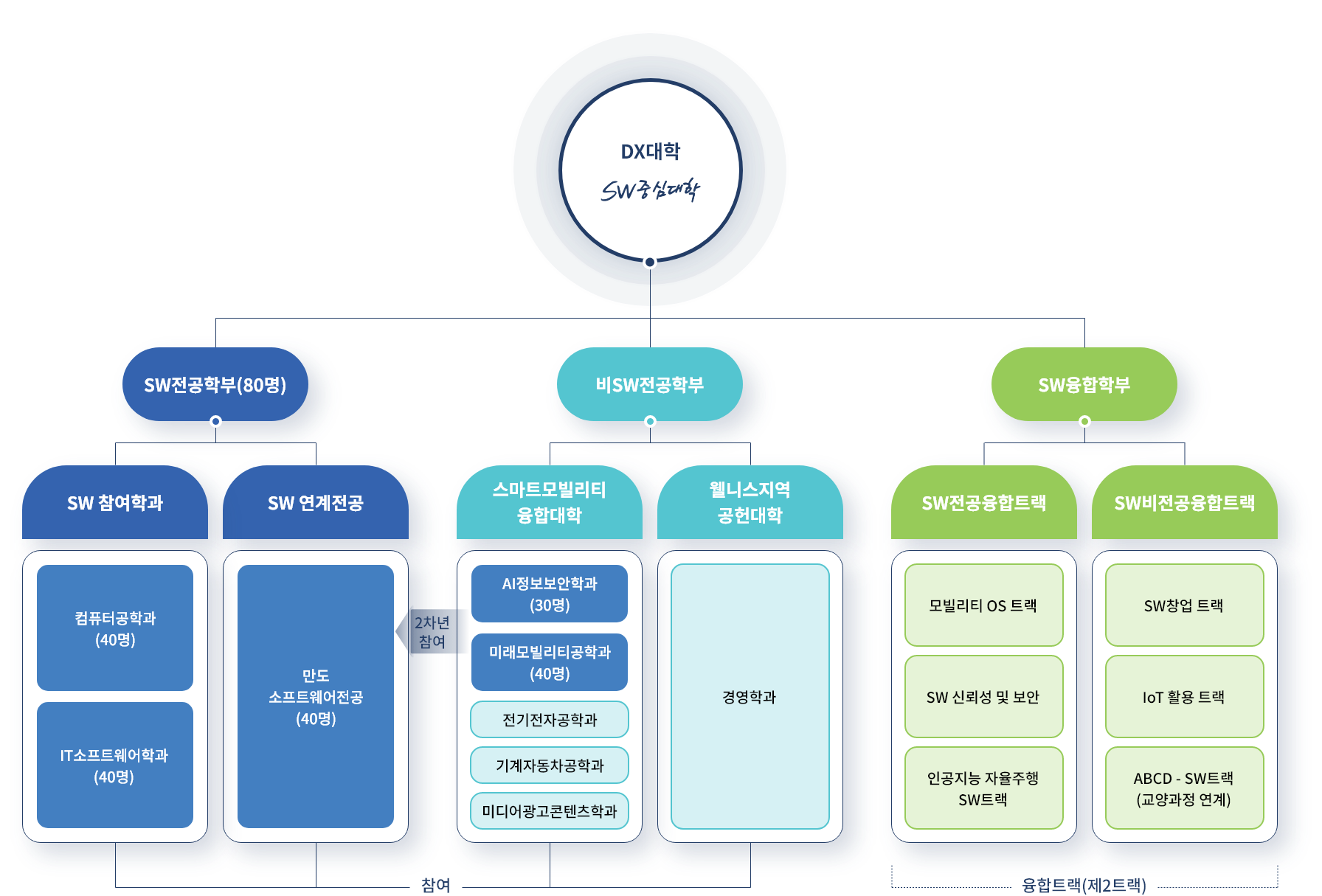 - SW학과 학생들의 융합교육과정 참여 확대를 위하여 3개의 융합트랙 개설